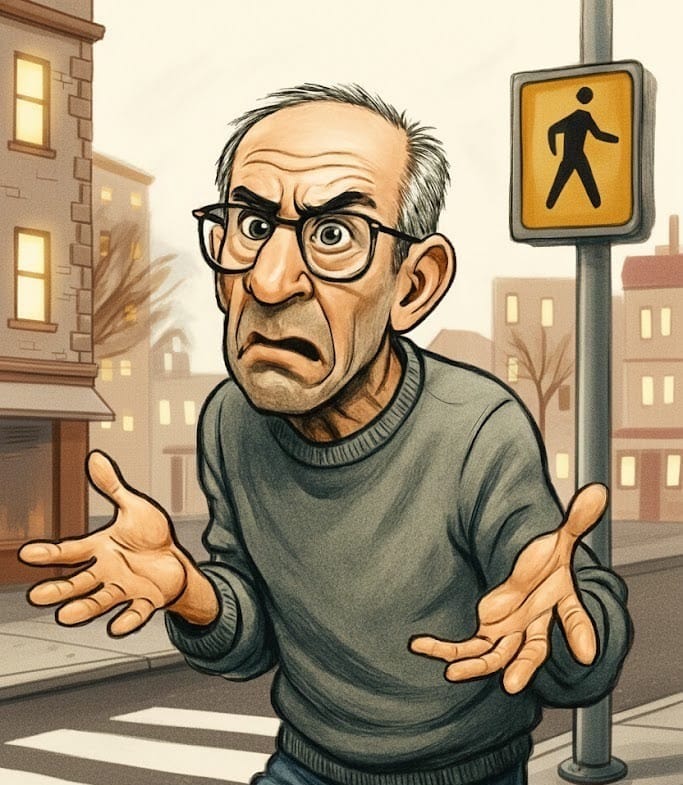 //consummate curmudgeon// //cardigan rage// //petty grievances// //get off my lawn// //ex-new yorker//